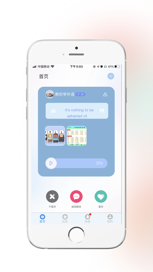 语约app是一款高效的线上聊天交友平台,进行网络社交非常简单轻松,智能匹配系统能够让玩家更加方便的匹配到用户,对对方的声音感兴趣之后才能够进行之后的语音社交,不一样交友模式都能够在语约app里面体验到,更有专门的类似朋友圈的社交专区方便玩家分享自己的生活,喜欢的朋友快来下载试玩吧。