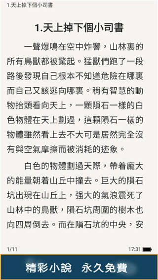 4、各类最新小说同步更新,精彩内容优先阅读,软件小巧清爽无广告。