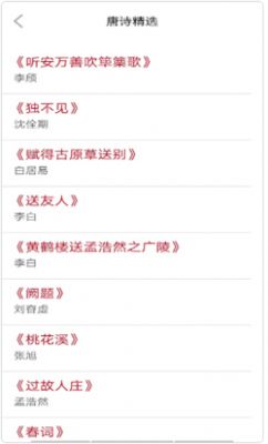 3、app里的唐诗根据诗人分类,你可以查看一位诗人的所有作品,都非常的详细,对于生字还有拼音注释,非常的方便。