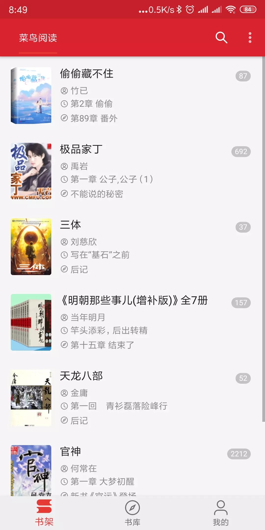 菜鸟阅读:给用户带来了非常优质的阅读小说的体验,用户在这里可以看到海量的小说资源,都是精品小说,这里的小说种类非常丰富,如果用户想看任何类型的题材,可以在这里找到对应的小说类型,平台非常智能贴心,可以记录用户的阅读进度,方便用户继续观看,另外所有的小说资源都是作者的原创作品哦,为你带来原汁原味的阅读乐趣,欢迎来下载。