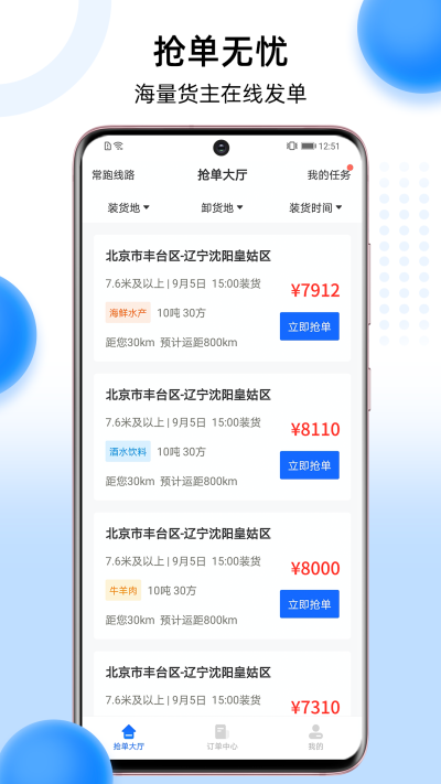 5.用户直接手机就可以了解到最新的货运订单,在线接单更加的高效。