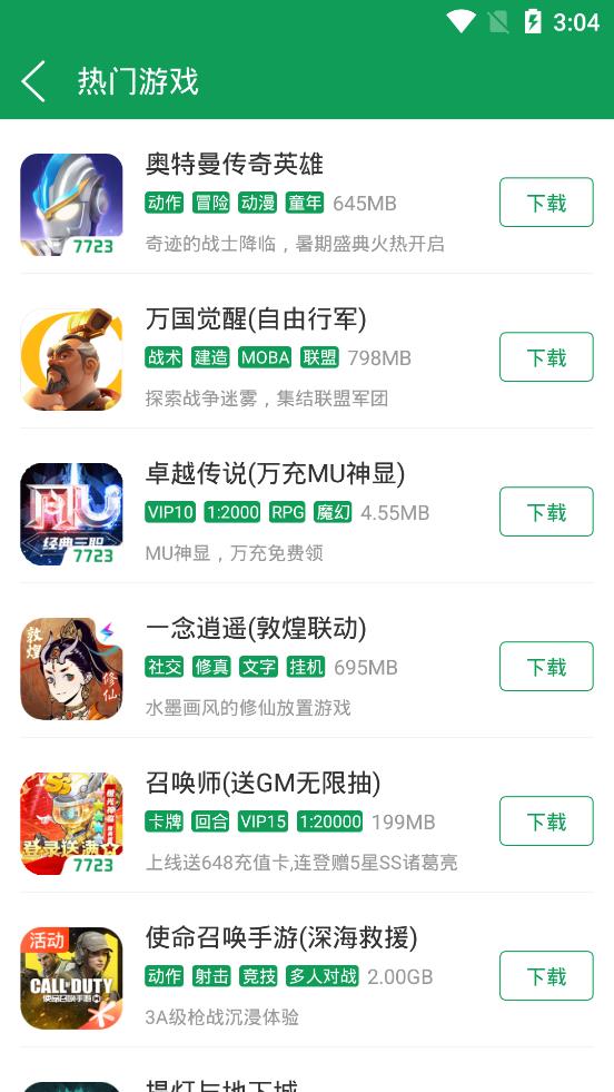 7723游戏盒app里面的游戏是真的多,不管你喜欢什么类型的游戏都是可以直接在这个软件里面去实时的搜索出来的,而且还都是免费提供给你的,这里的海量游戏资源是真的有趣,想什么时候玩就什么时候玩,这里的各种游戏福利和资讯之类的都是可以直接领取的。