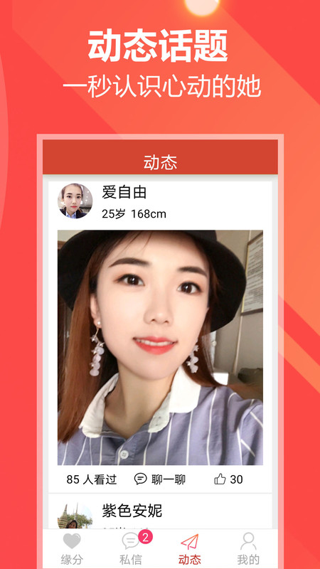 2、可以帮助您快速的找到属于自己的缘分,全部都是经过实名认证的,让您可以放心的进行交友。