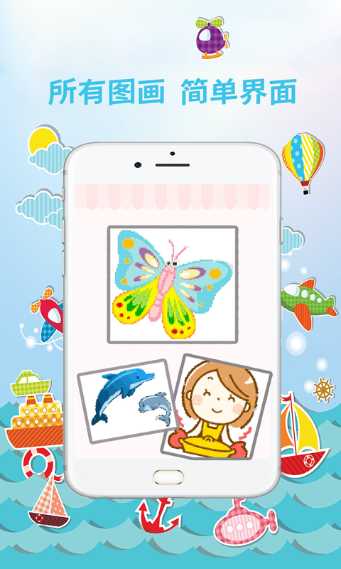 1、软件中包含非常丰富的线稿花样。每一种不同类型的图案都有不同的原始颜色,让孩子在填色练习中感受颜色的变化。