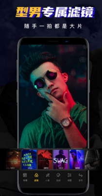 3、型男滤镜:你可以选择N种男生风格滤镜如:街头潮流、运动阳光、文艺清新、黑白时尚等。