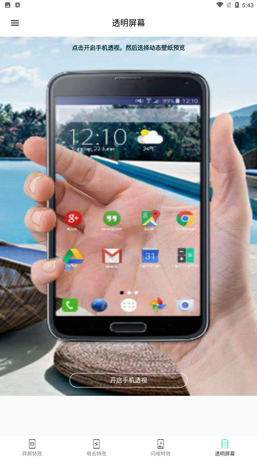 3、这里的壁纸都是透明的,特效非常的逼真,让你的手机屏幕更加的别具一格,想要追求个性的朋友就不要错过了。