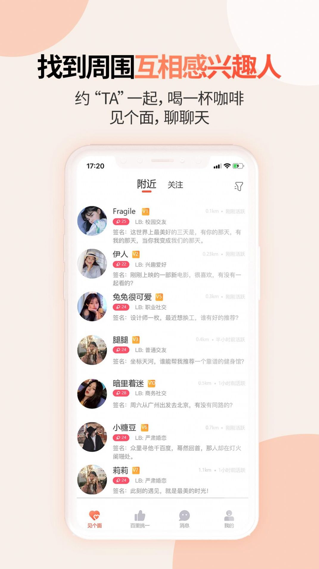 1、见个面app是一个交友便捷的社交互动平台,平台中汇集了非常多的活跃用户,多种交友玩法可以自由体验;