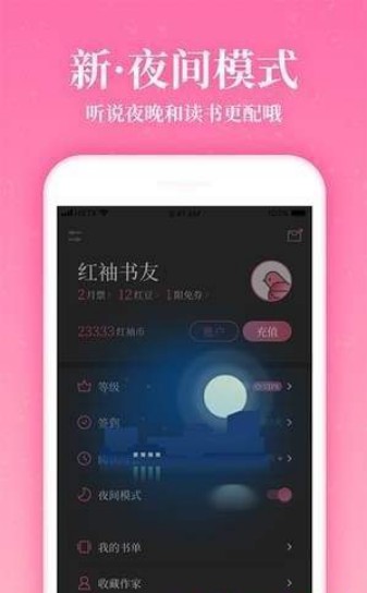 3、黑夜模式:红袖读书app独家推出全局夜间模式,为您的双眼提供适宜的阅读模式,让您在夜晚也可以专注于读书。
