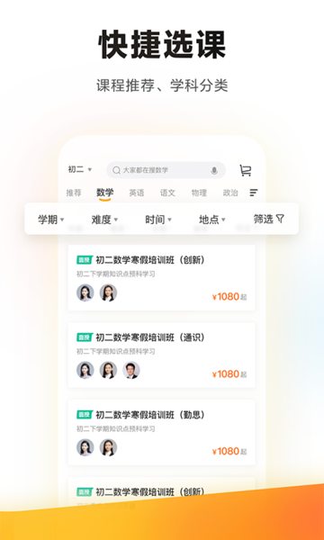 4、学而思培优移动产品将为您解决以上烦恼,给您的报名流程带来全新体验。