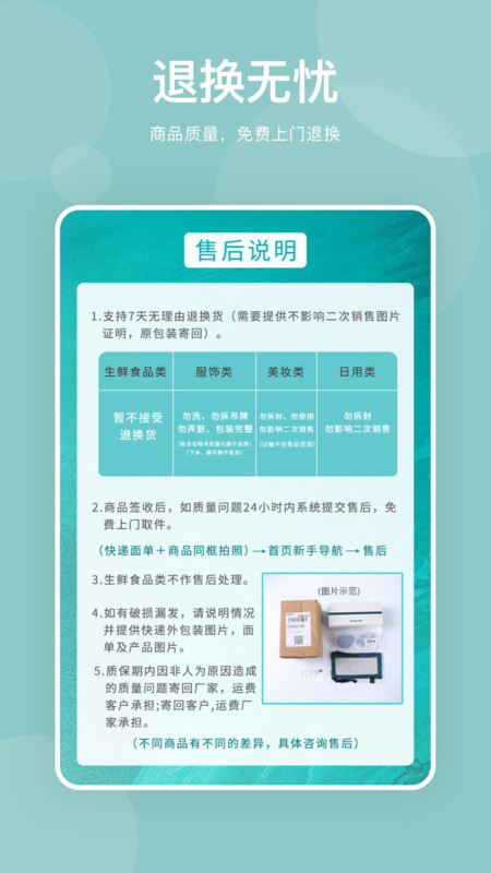 3、平台是有提供7天无理由退货的哦,而且还是可以上门取件的哦。
