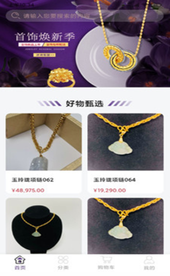 1、用户如果有任何想要进行购买选择的珠宝商品,在搜索栏中进行搜索,然后就可以十分容易的获取到自己心仪的珠宝了