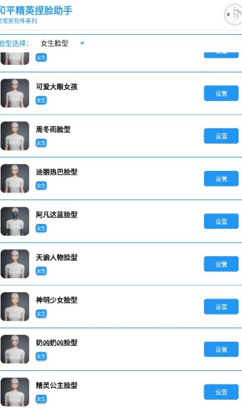 2、想要得到一个直接满意的脸型还是有点困难的,和平精英捏脸助手包括不同脸型的男性和女性。