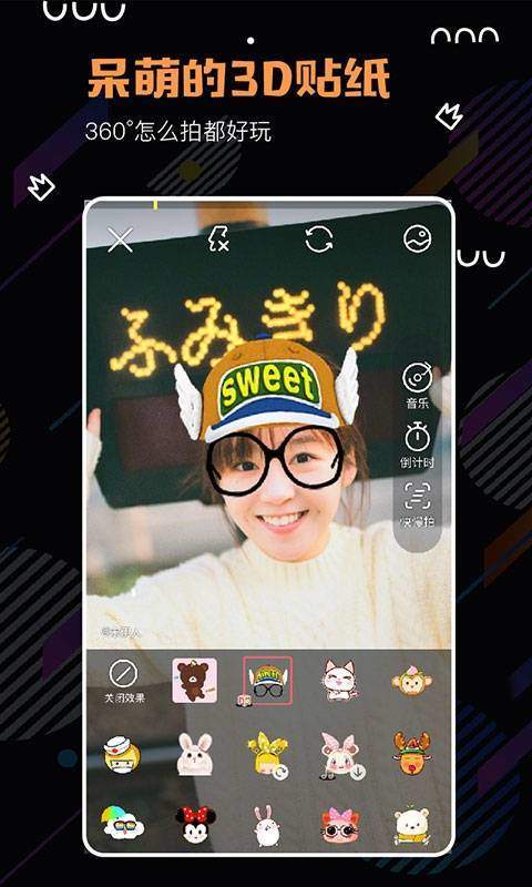 3、还有海量贴纸和拍摄道具,让你轻松拥有各种风格的图片,快来拍起来吧~