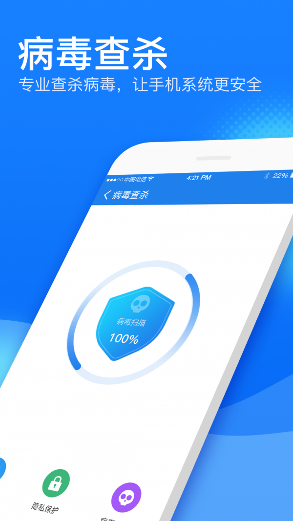 病毒查杀,专业查杀病毒,让手机系统更安全。