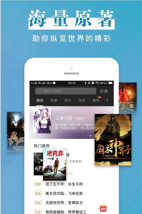 1、【精选书籍】女频、男频、出版、各种小说任意看。