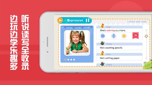 2、这里有很多趣味的教学,帮助小朋友们去领略英语口语的快乐教学。利用趣味性很强的闯关教学模式;