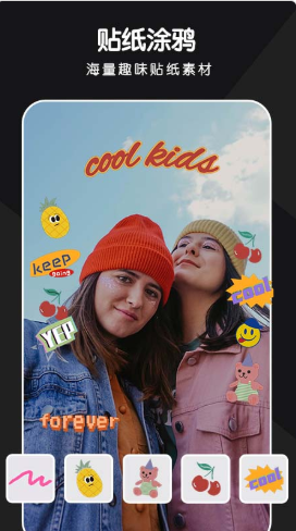 2、用户也可以在自己的图片相片中添加很多生动可爱的贴纸素材。