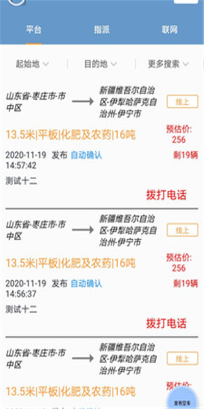 2.这里的订单信息非常的全面,全国各地的订单都可以在这里看到,方便司机在线接单。