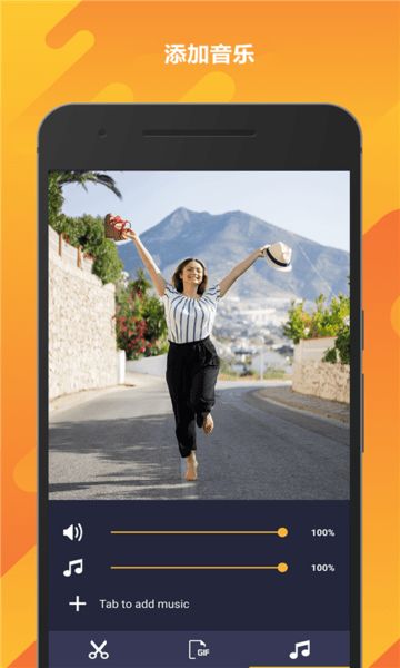 3、在手机存储器中将自己的音乐添加到视频中,调整原始视频音量和调整歌曲的音量,使它们完美的融合达到您想要的效果。