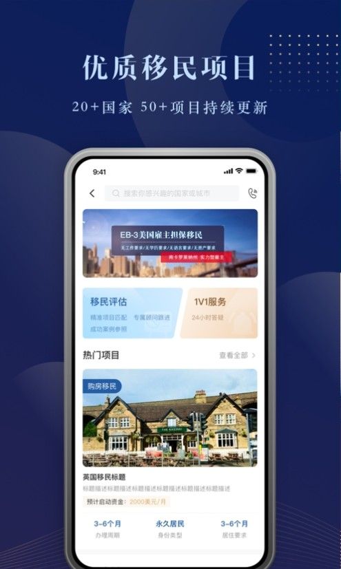 1、使用这款软件可以及时的浏览最新的移民留学政策和资讯,覆盖全球多个国家的移民留学业务。