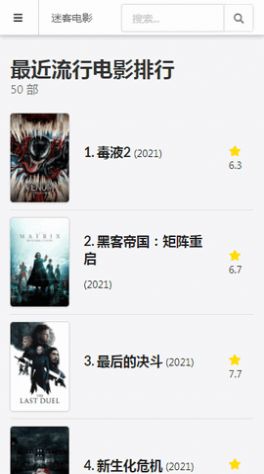 mini4K是一款资源丰富的影视软件,你可以在这里获得近期的评分较高的电影,帮助你找到你想要的电影资源并观看,这里的影视作品种类也比较丰富,你可以通过搜索快速精准的找到目标进行观看,不同的板块有不同的主题影视推荐给你,让你接触到更多有趣的影视作品,快来下载使用吧。