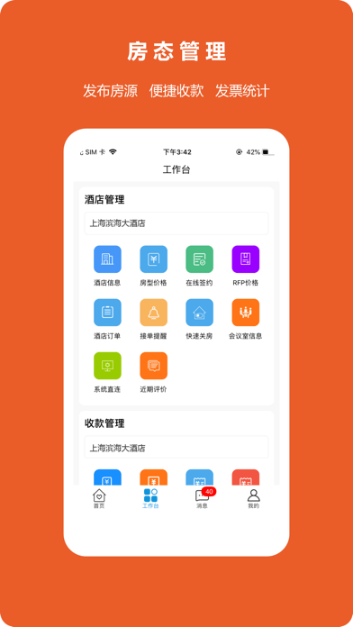 为酒店行业打造的智能运营管理移动系统,支持客房管理、接收单、消息提醒等等服务