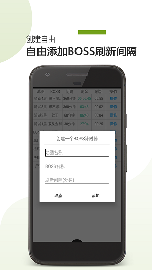 1.在输入栏输入boss的名称和刷新的时间以及通知我们的时间,软件就会自动的为我们进行计时。