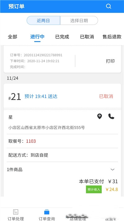 3.实时统计交易数据,包含了收入、营业额、下单人数、有效订单和售后订单等数据,除此之外,还可以管理门店商品上下架问题。