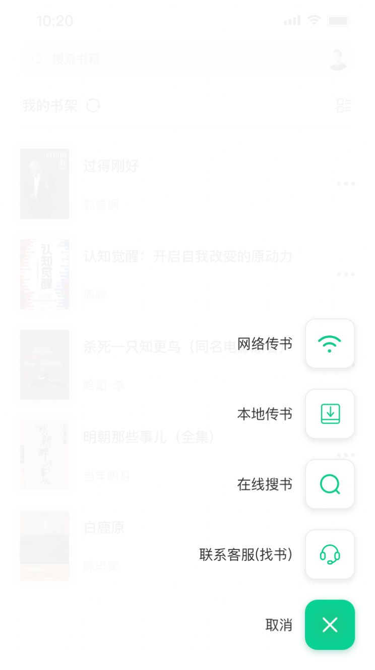 1、【智能书架】支持宫格、列表排列模式。按最近阅读时间排序。