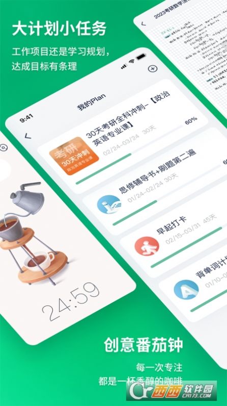 3、为考友提供优质学习资料和学习计划,创造一个自由、降噪的学习氛围,用榜样的力量成就彼此,让优秀变成一种习惯。