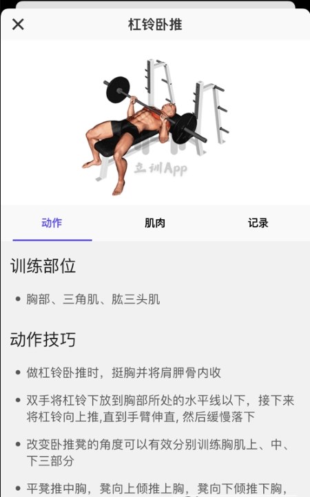 1、1000+训练动作指导, 并配置专业的动作介绍,保存你训练动作最大重量;