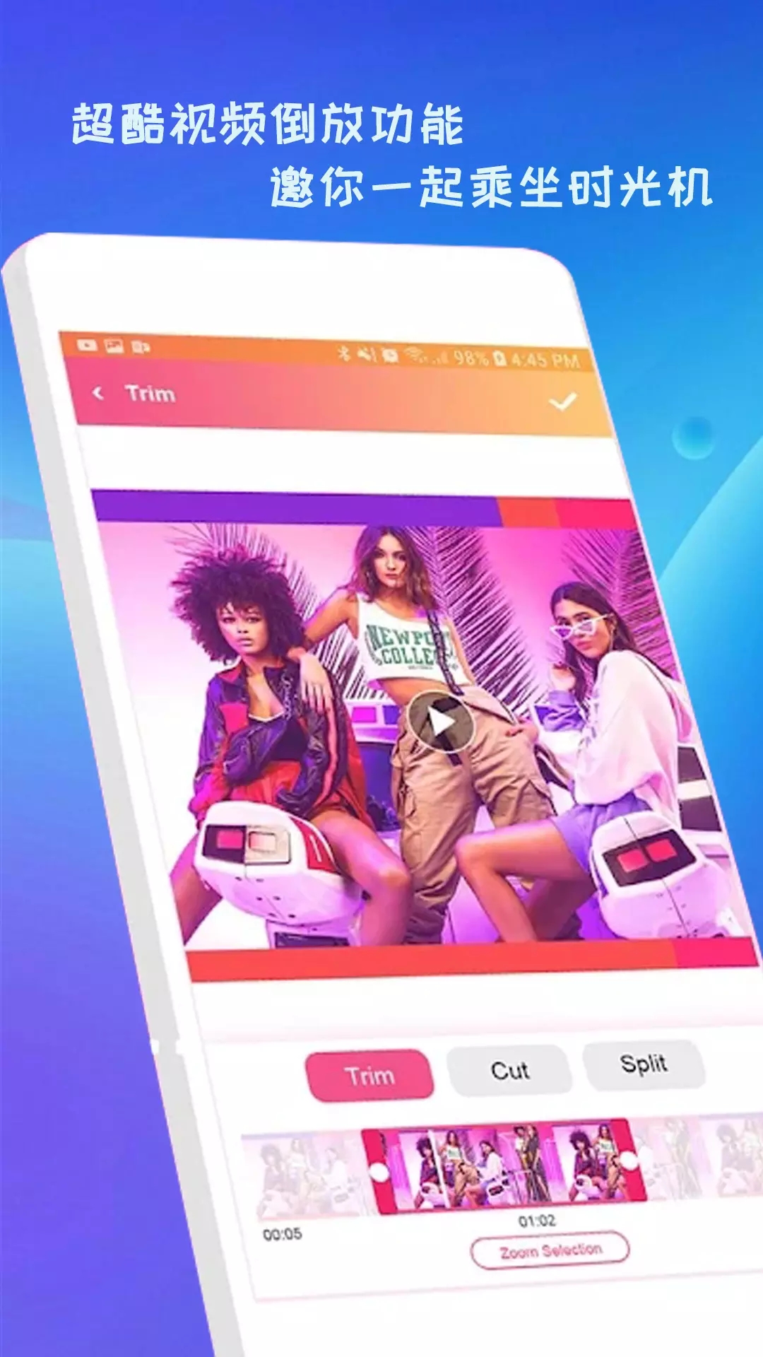 支持视频剪辑,倒放,视频分割,变速等功能,非常的强大。