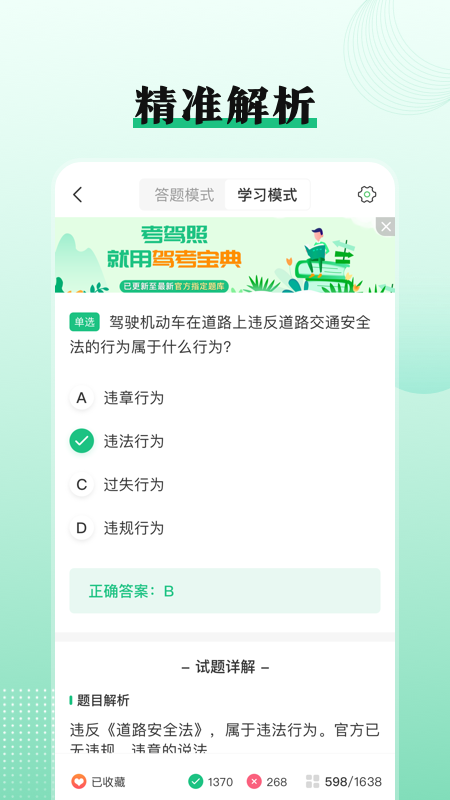 2.专业的真题详解:结合交规变化逐题整理题目详解,理解透彻更好记忆。