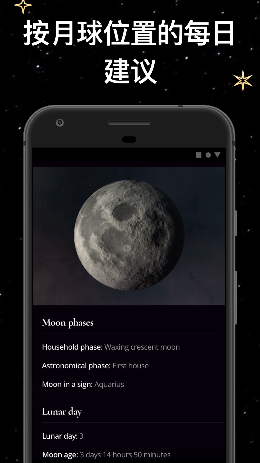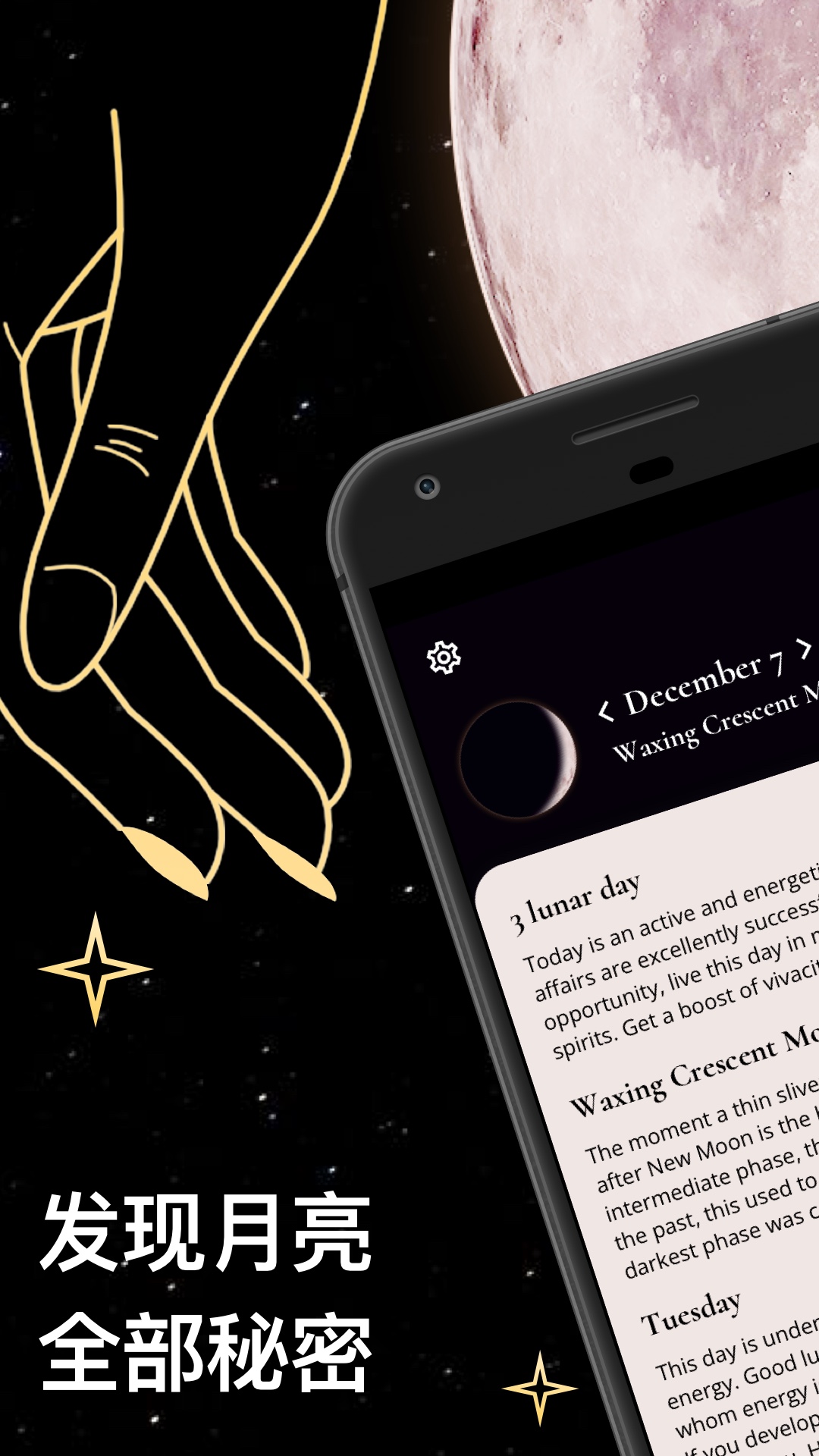 2、但是用“月相日历和阴历:月球事实”您可以轻松跟踪满月和新月并根据不同月相安排自己的生活!