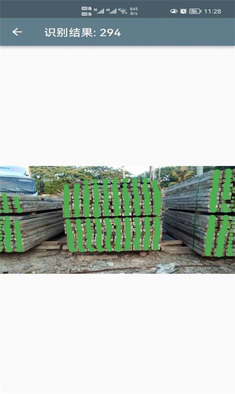 3、手机拍照点数相机一秒自动识别方木、原木、钢管、钢筋,在钢管、钢筋钢管摆放整齐的情况下。