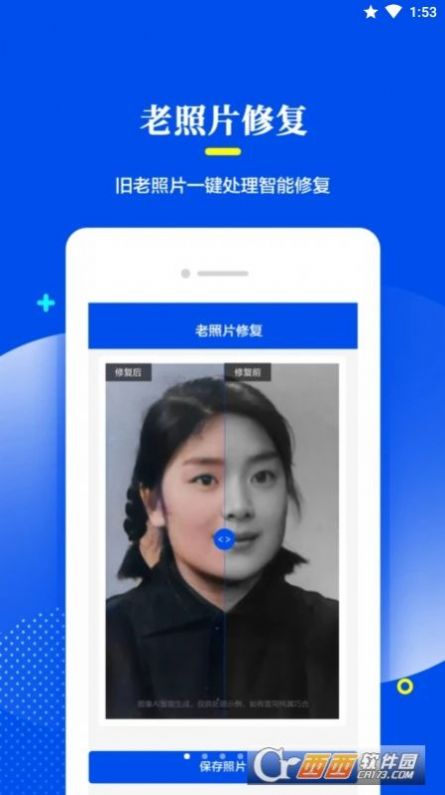 1、老照片修复助手能够通过AI识别技术对老旧照片进行修复,快速的帮助用户进行斑驳痕迹修复;