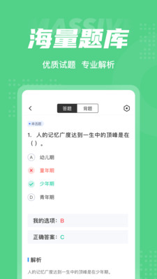 1、针对青少年心理成长指导师考试的应用,功能超级丰富;