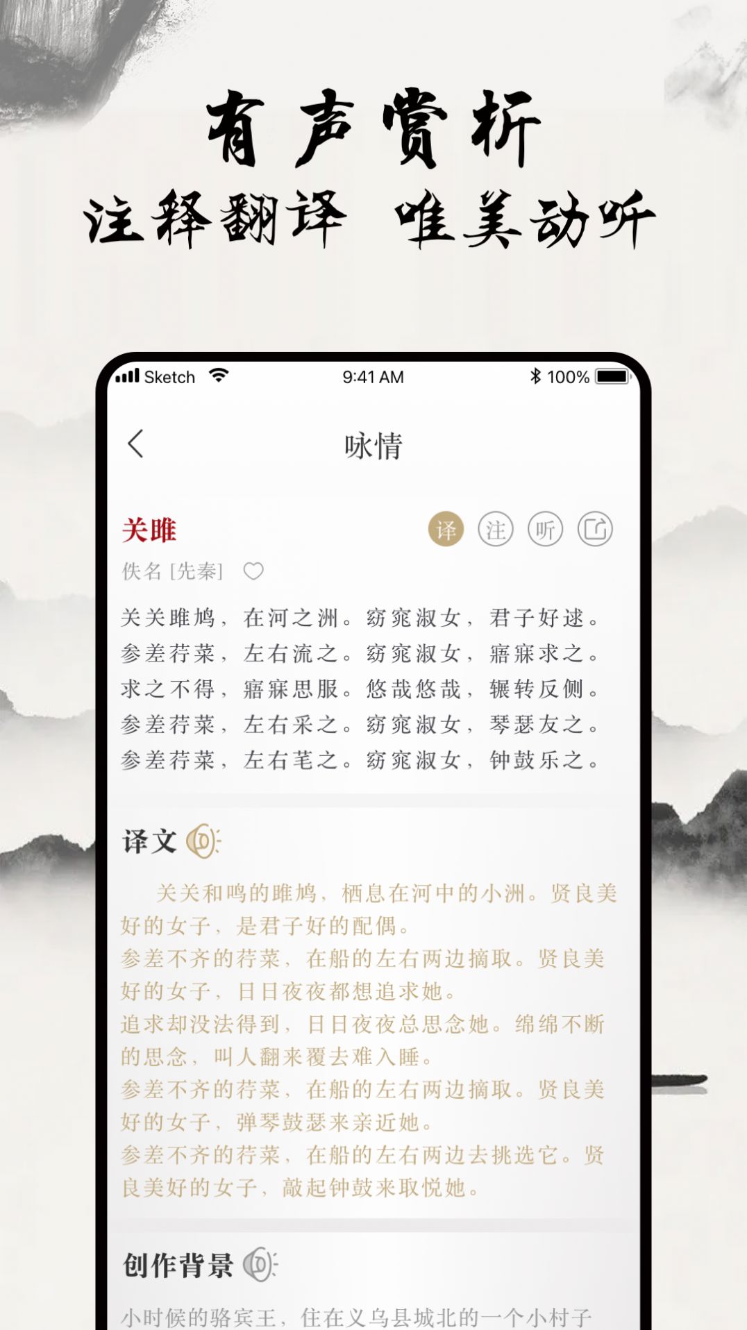一起学古诗app可以帮助用户们学习更多的古诗词内容,整首翻译可以让用户们更加理解古诗词的意思。