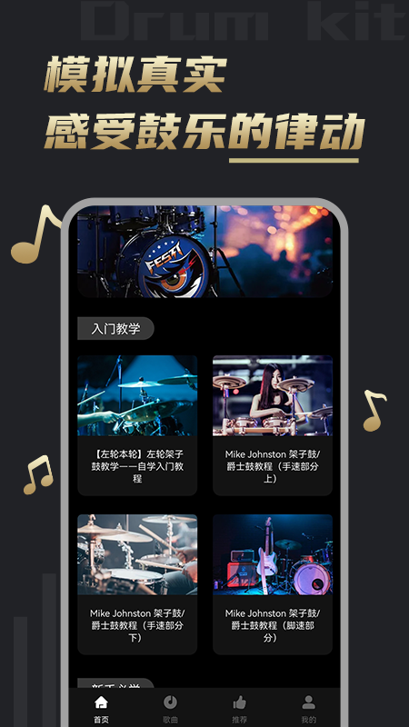 内置多首简单的架子鼓音乐示例和鼓谱让架子鼓小白也能快速成长,的架子鼓演奏。