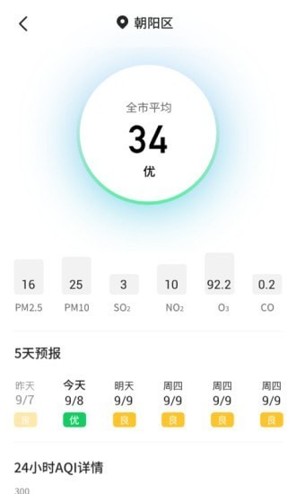 3、空气指数,详细的空气指数指标供你查询,了解真实的空气,体感状况。