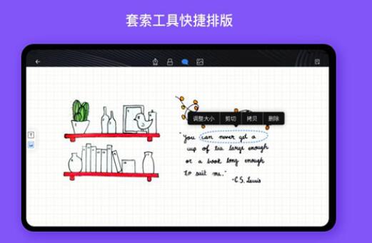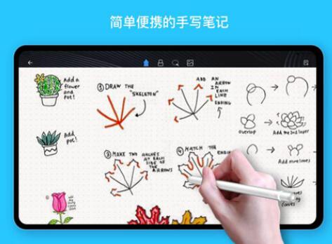 2.顶部有一排小工具,操作起来并不复杂,傻瓜可以学习。连接iPadpencil直接做笔记。您可以自己选择笔和荧光笔的颜色和大小。无论是插入图片还是套索,它都非常好用!