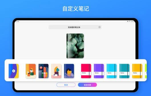 1.打开后,您可以直接创建一个新笔记本,可以自定义封面或从随附的封面中选择,然后为笔记本的内页选择格式和颜色。内置格式可以完全满足各种日常需求!
