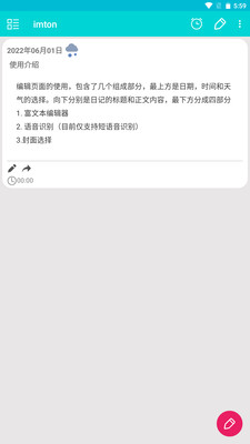 1、imton是一个非常注重隐私保护的一款日记,你可以放心在这里书写你的日常;