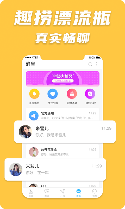趣捞漂流瓶app为用户带来了一种新奇的交友方式,利用漂流瓶的方式,展开交友,让用户可以体验更加有趣的交友方式。平台内的所有用户都是实名认证登录的,用户可以放心在这里交友。平台为用户创造更多的交友机会,让交友变成件更加简单的事。还有超度更加有趣的玩法,等你来体验,快来下载吧。
