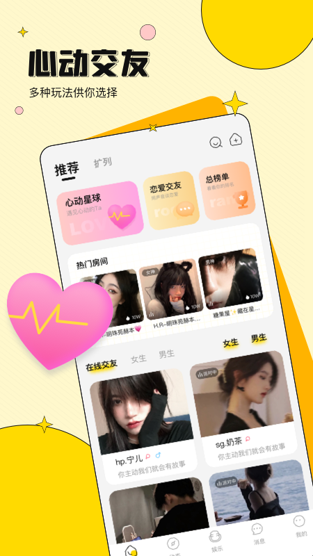 2、各种不同的社交玩法带给大家,喜欢的玩法都可以满足的,随时随地交友;