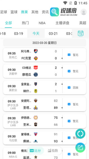 3.自带比分版块,可以为用户实时带来更多联赛比分信息,掌握更多专属的比赛数据。