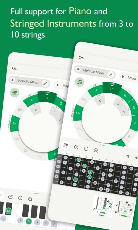 1、包含了很多的弦和音阶,满足用户的作曲需要。