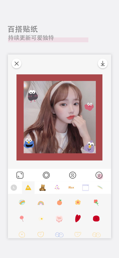 这个拍照软件实在是太好用了,简直就是一站式服务,上面的滤镜贴纸都好可爱,各种风格的都有,一整个爱住。
