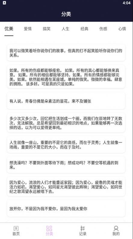 3.这里有精选、最新、励志、人生以及名言等多种功能为你去提供。