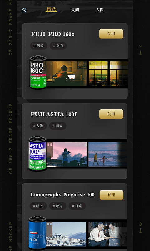 1.海量胶片随时可以筛选,而且还为大家提供了拍立得相框,电影质感纹理随时可以享受到;